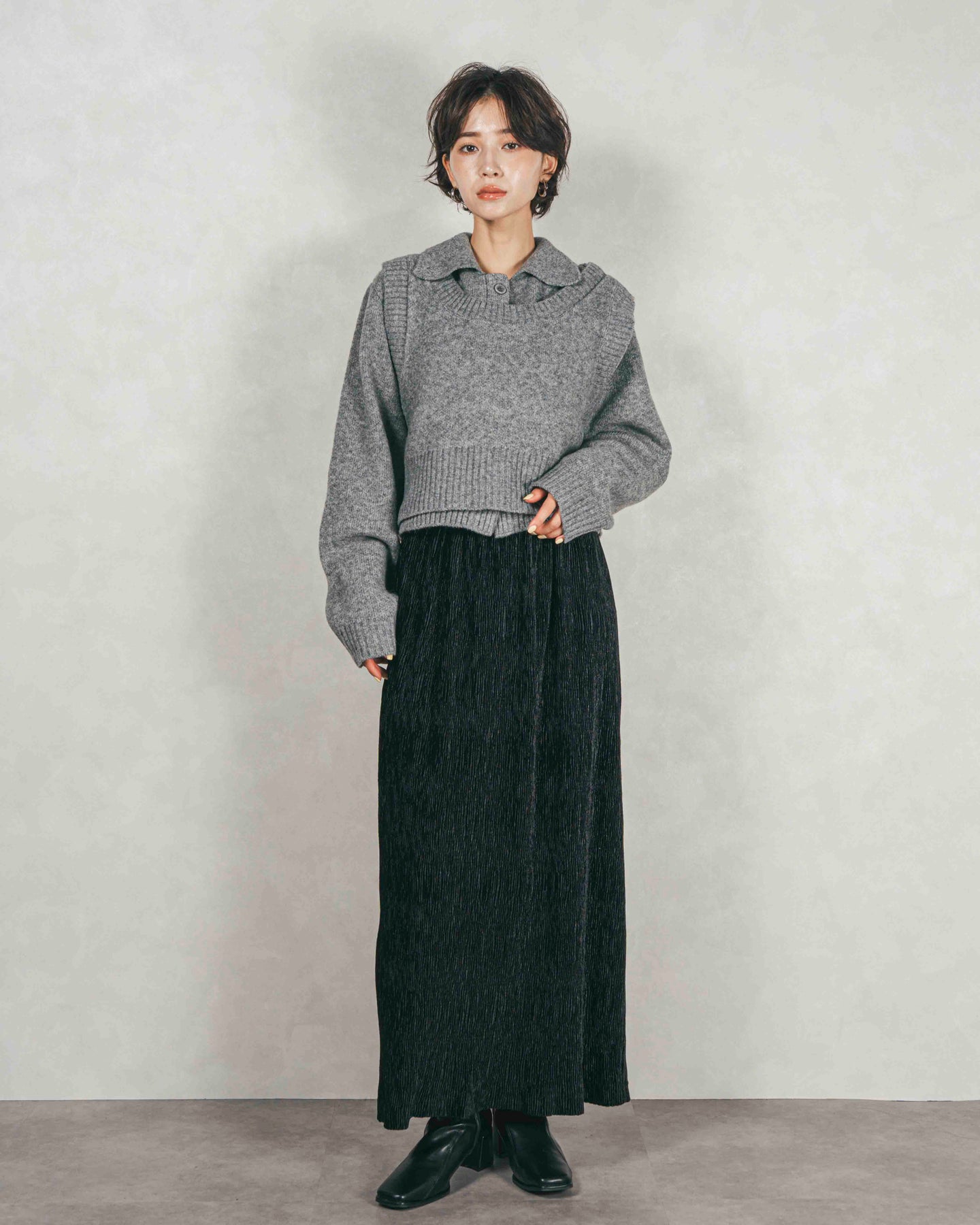 ハイウエストのボトムスとの相性が抜群。ロングスカートやワイドパンツと合わせれば、メリハリの効いた今っぽい着こなしになります。同素材のベスト・ショートパンツと合わせたセットアップスタイルは、個性的でおしゃれなリラックスムードに。