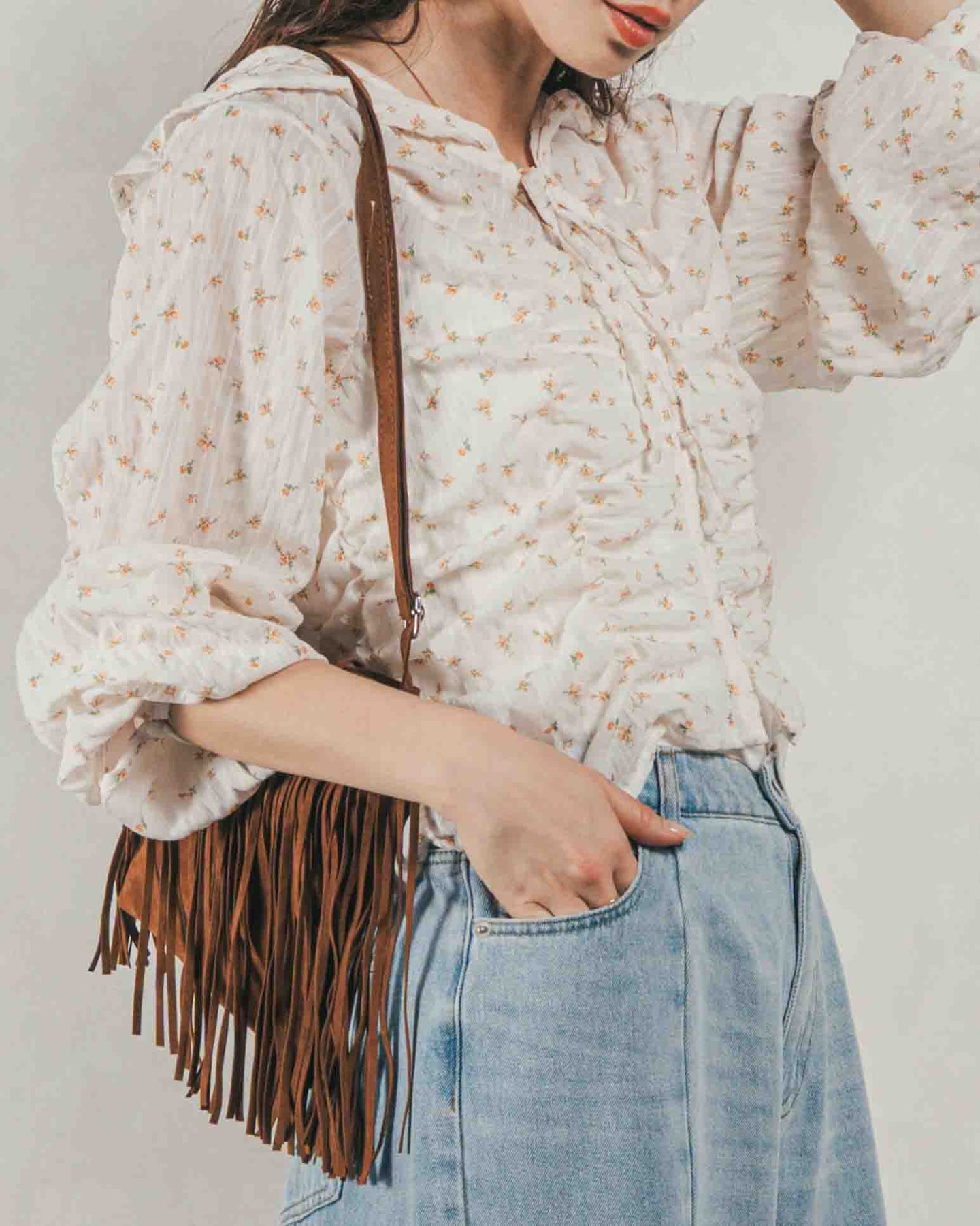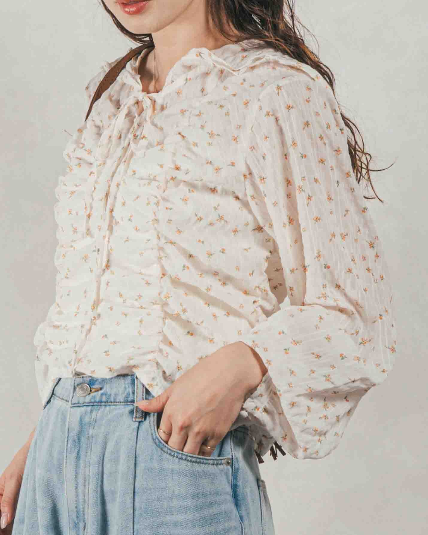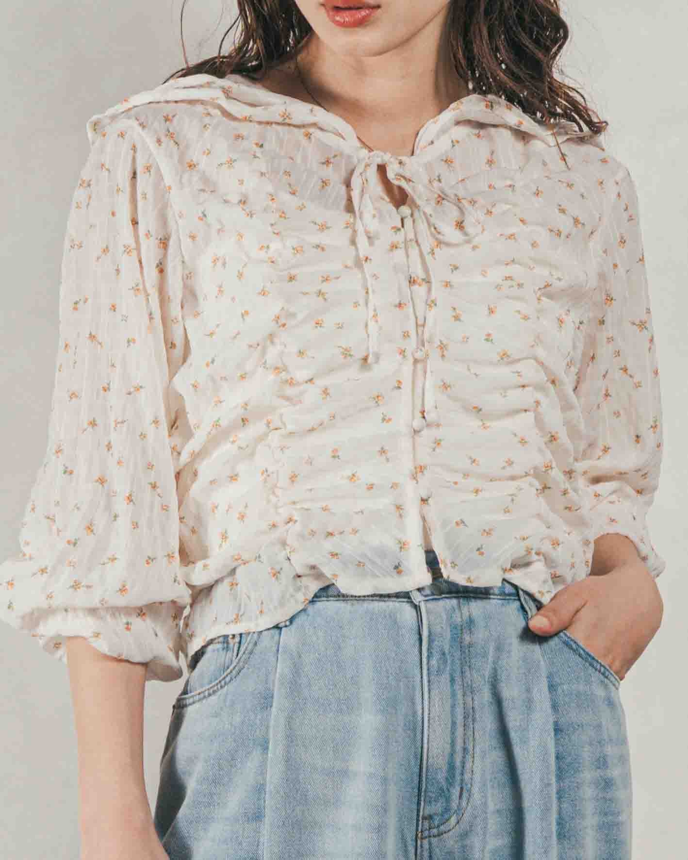 主張しすぎない小花柄で、取り入れやすい春アイテム。シフォン素材の軽やかな素材感です。