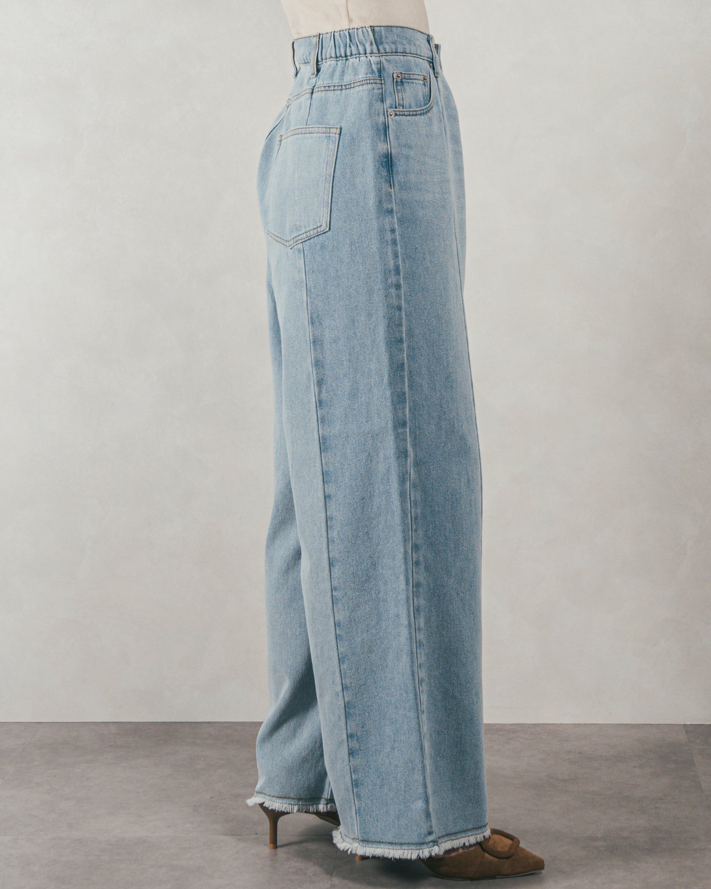 ほどよい厚みと柔らかさをあわせもつ「10oz(オンス)」のデニム素材。重すぎないデニムの質感でストレスフリーなはき心地。