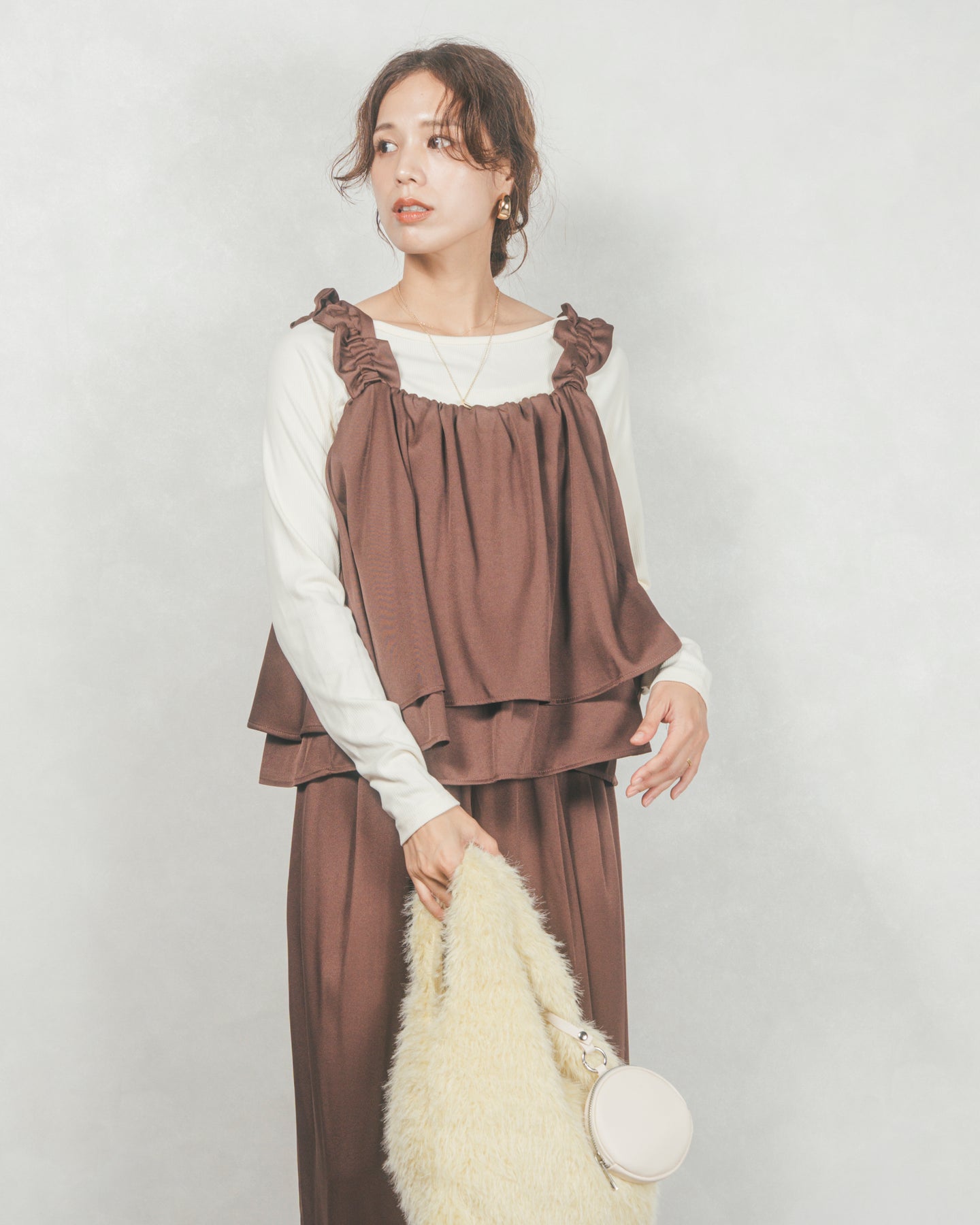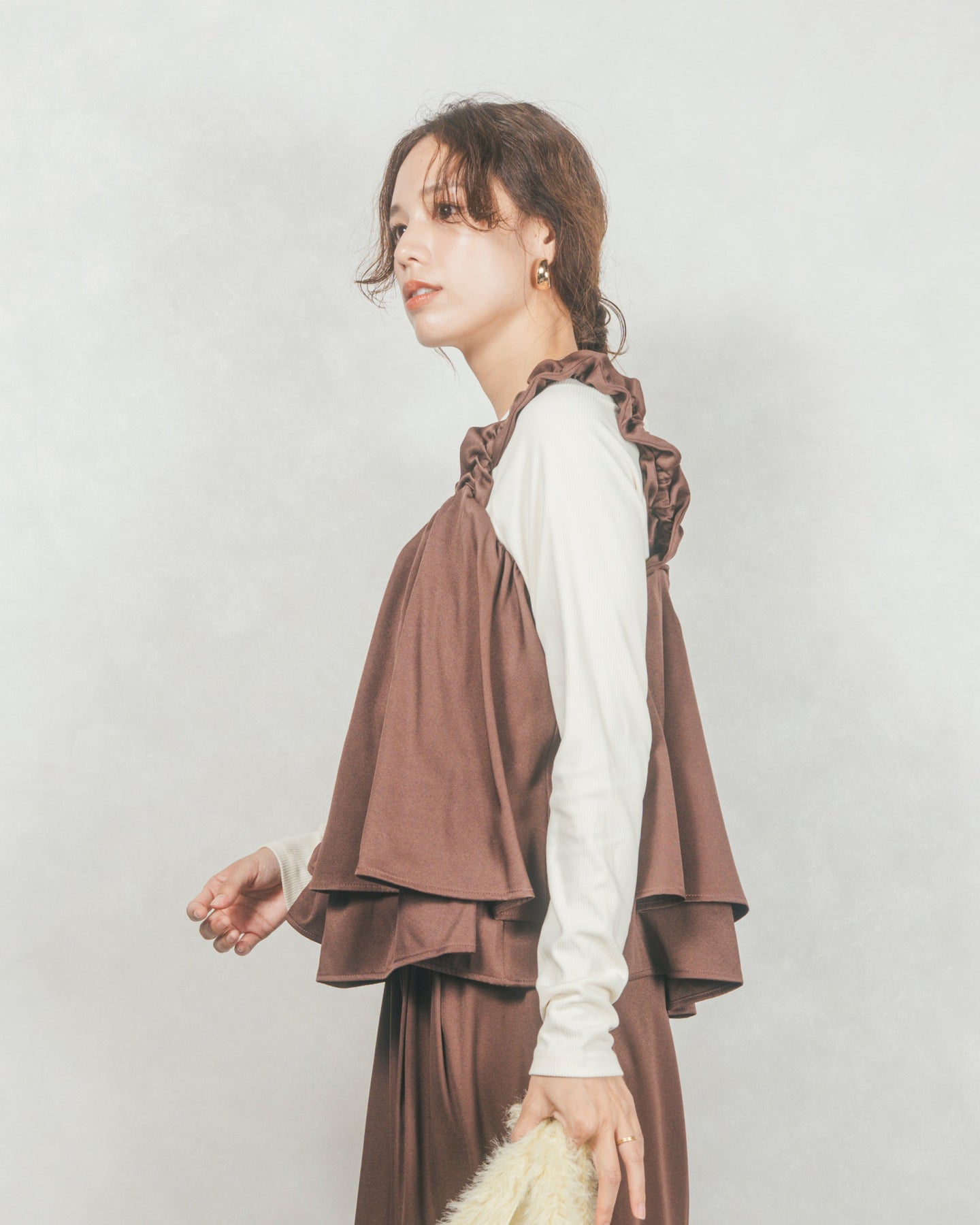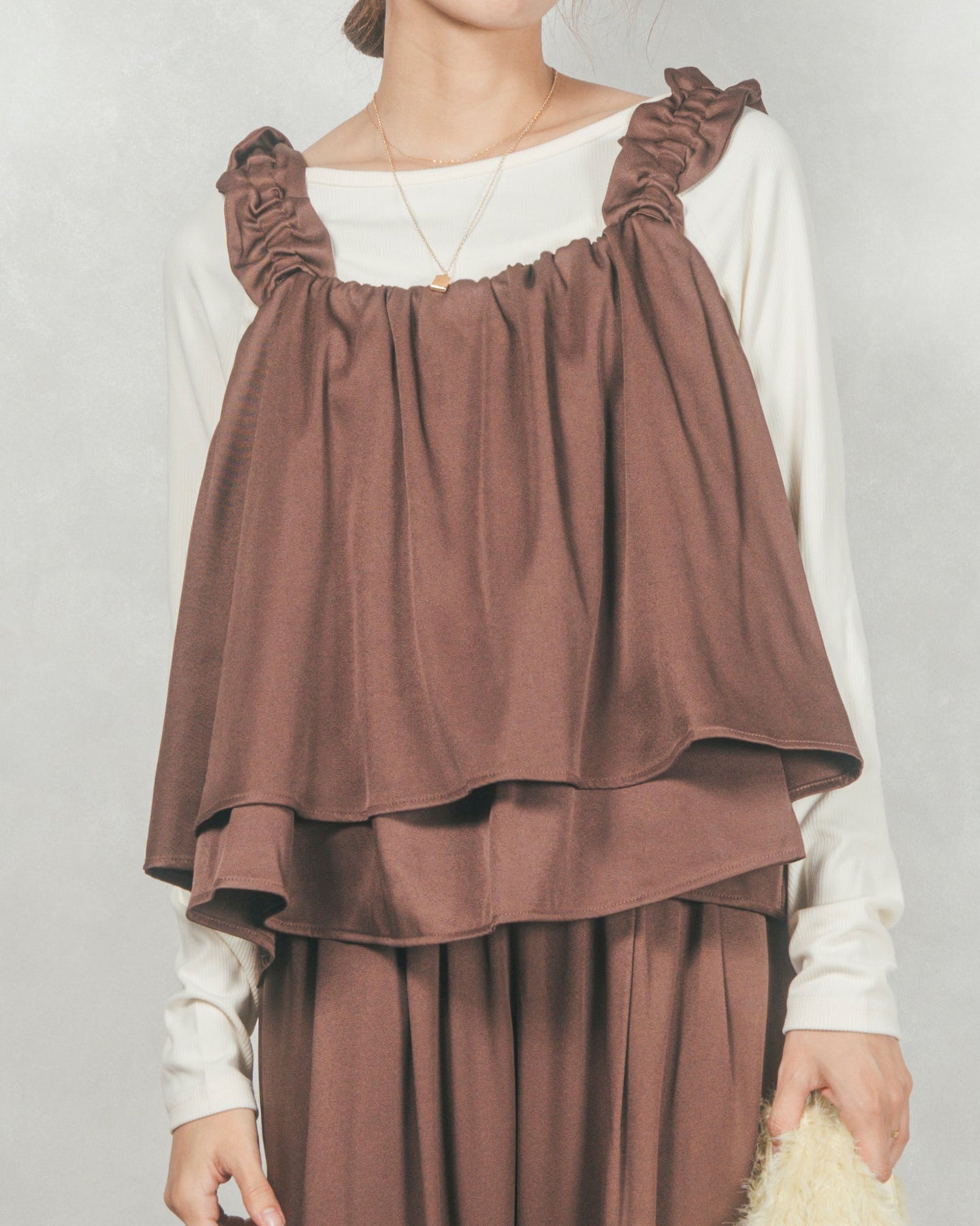 Frillギャザービスチェ (BROWN)