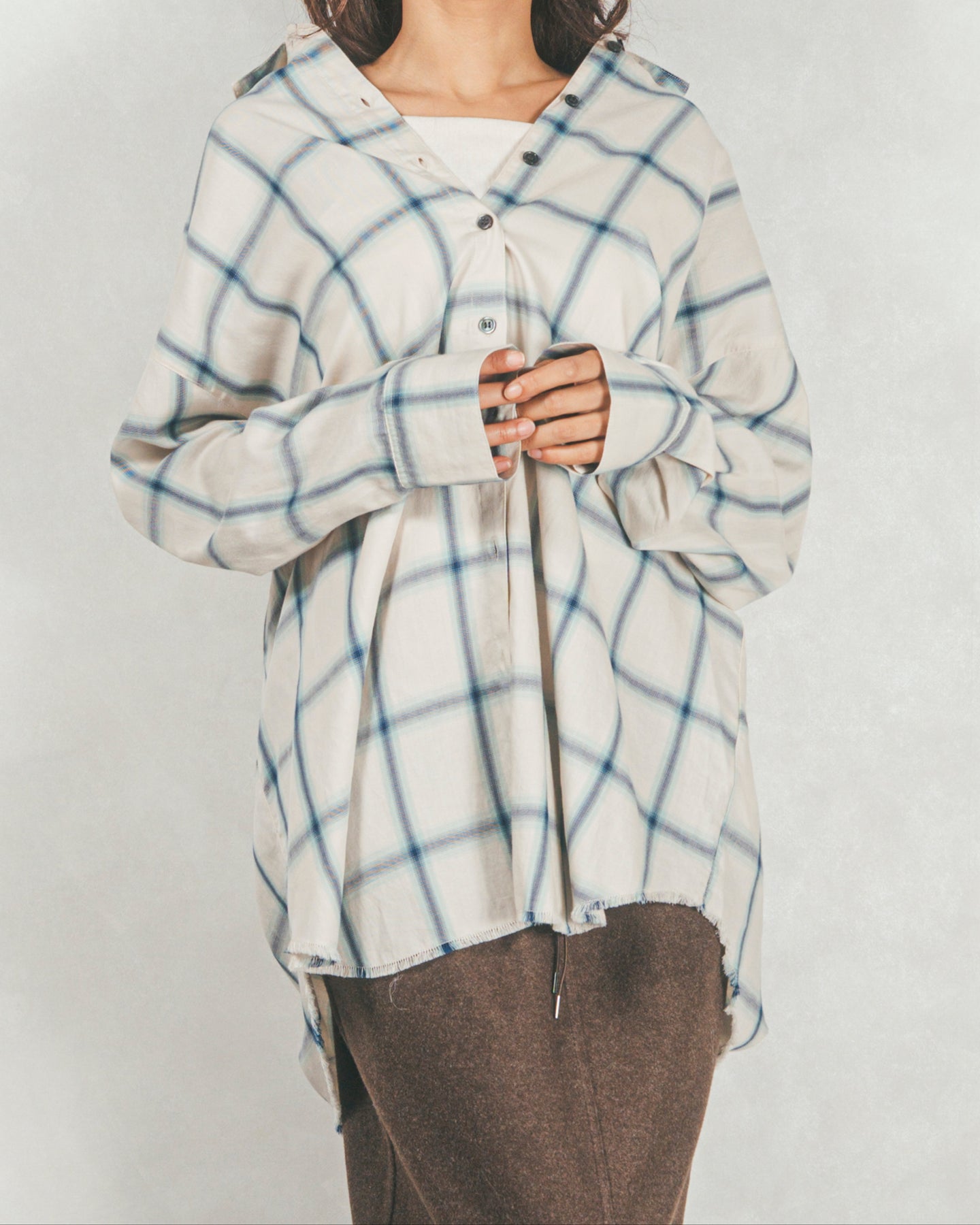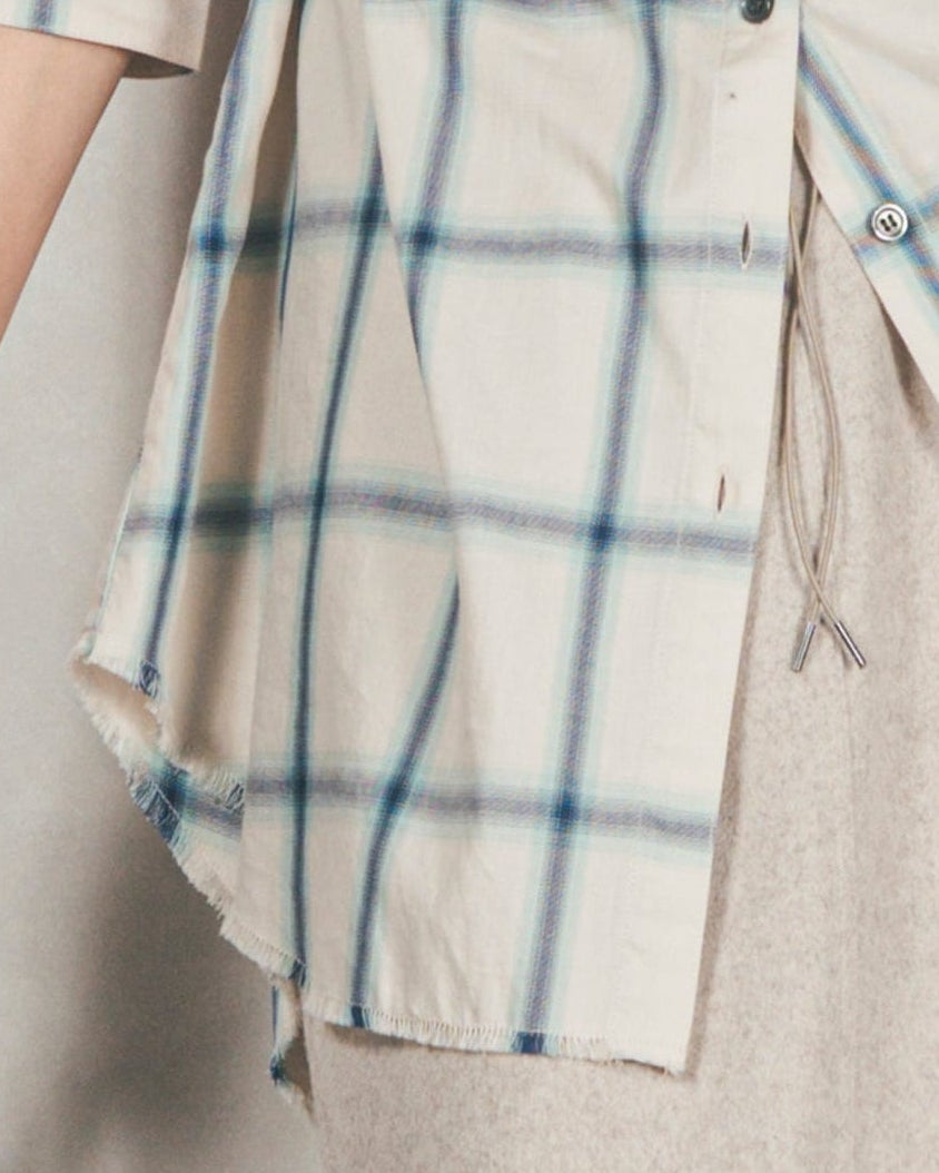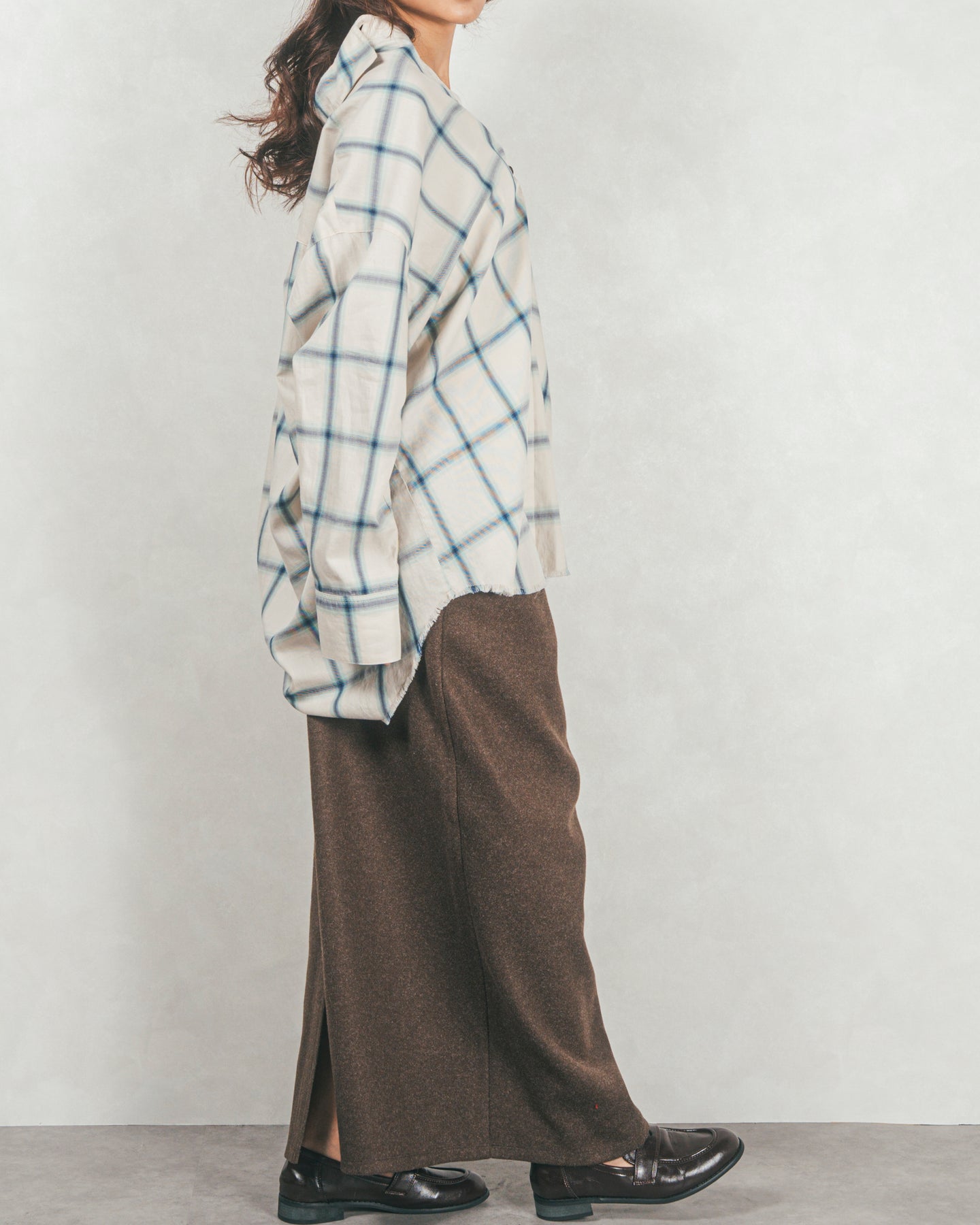 ゆるシルエットでこなれ感を演出できる、オーバーサイズチェックシャツ。切りっぱなしのラフな裾もポイント。