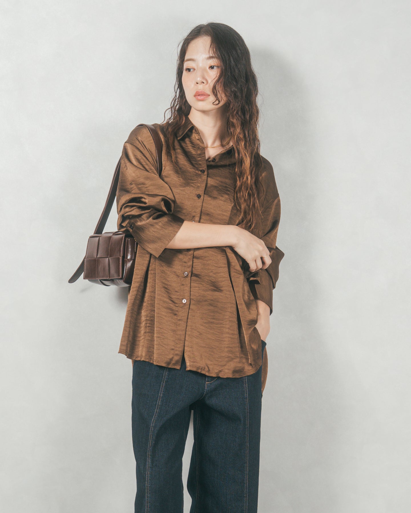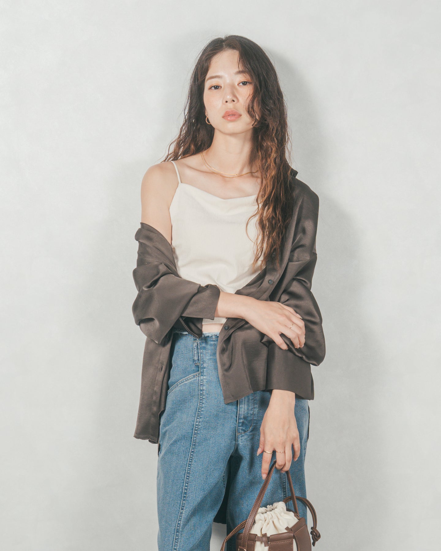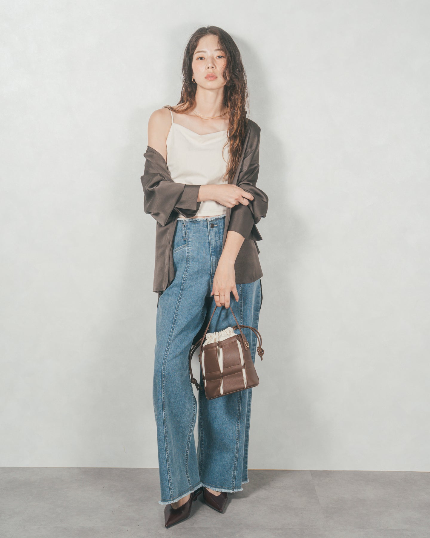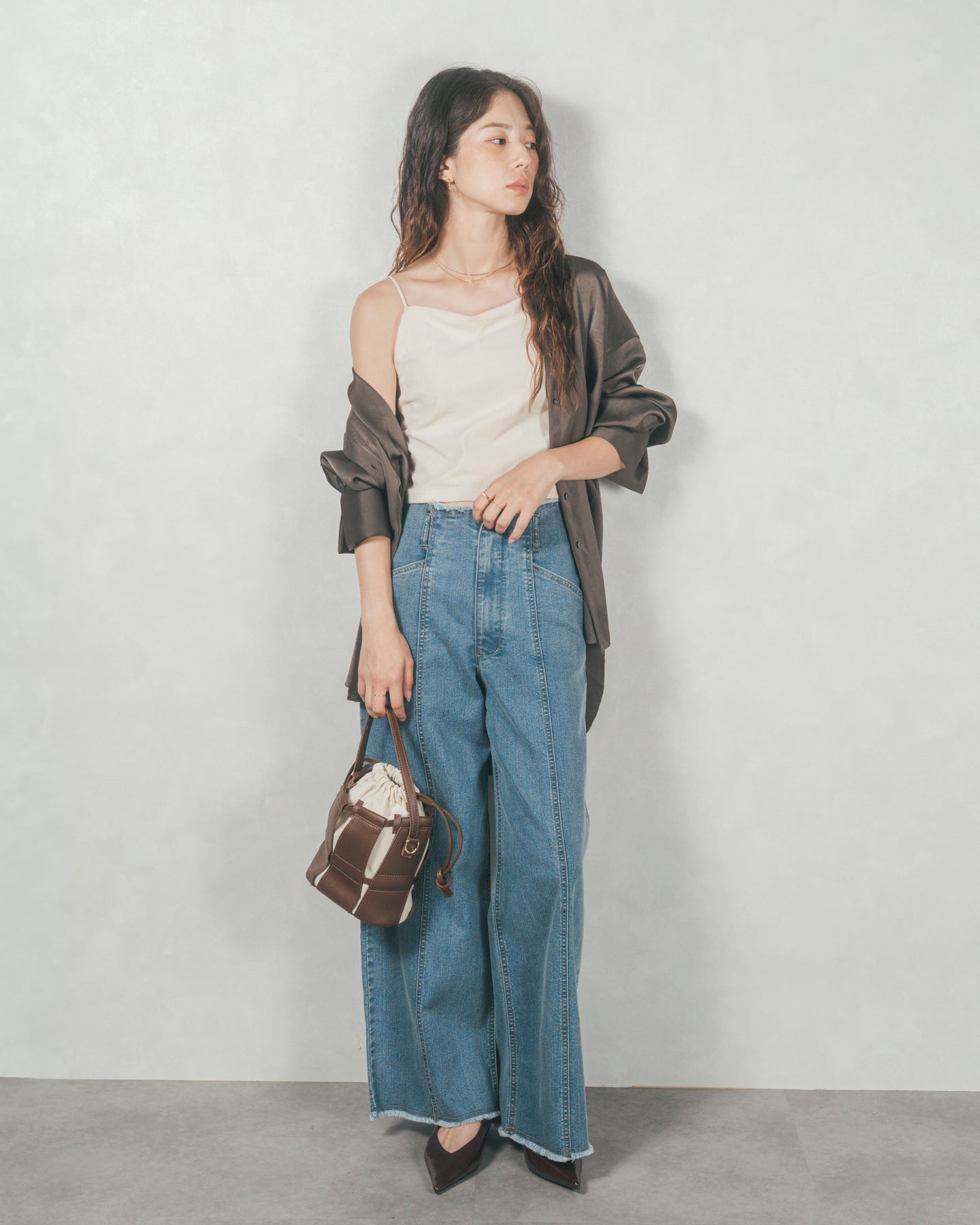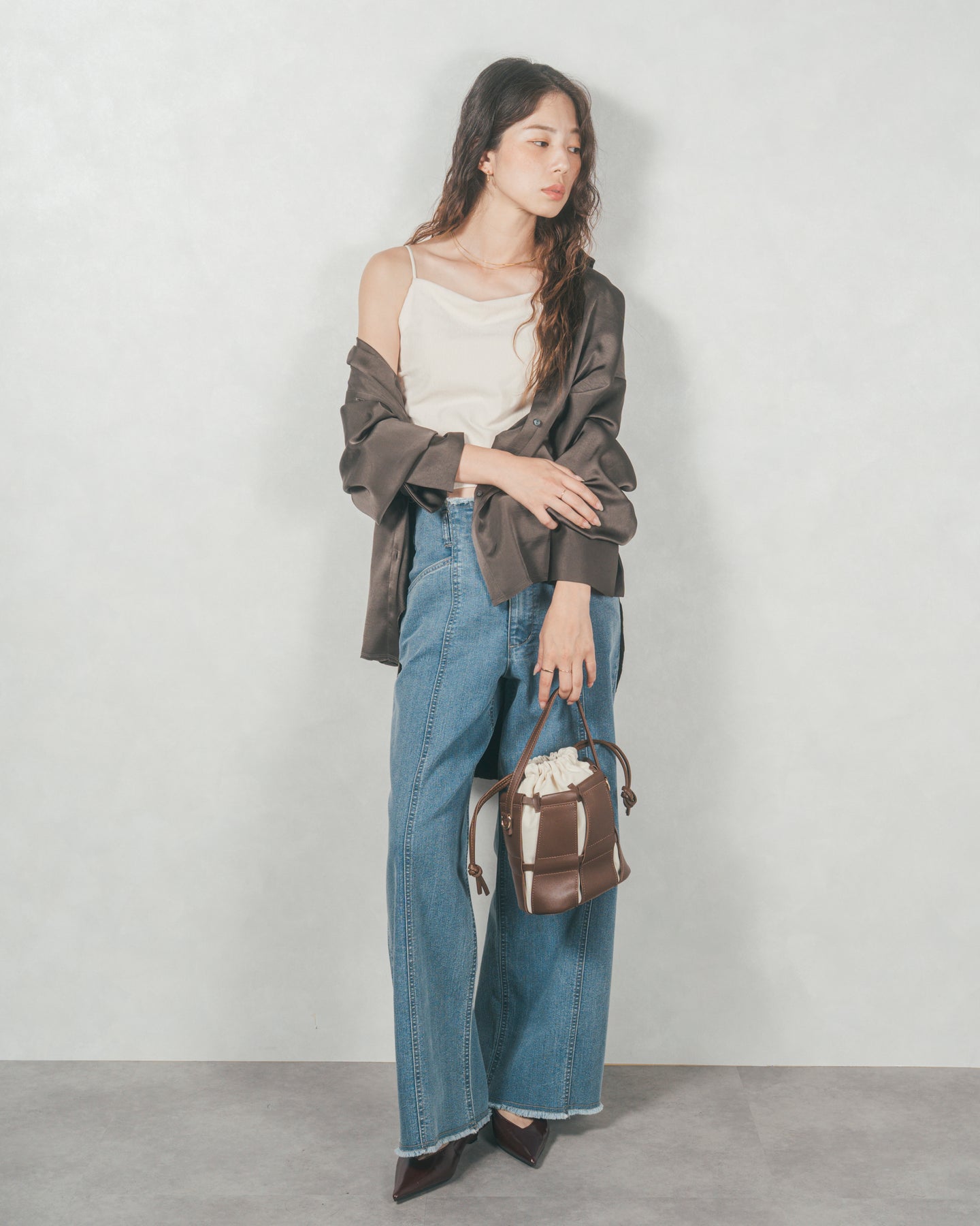 [SET]マットサテン タックシャツ+センターシーム リラックスワイドデニム(2SET)
