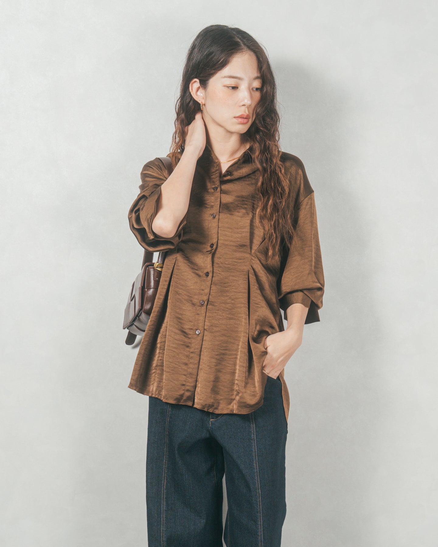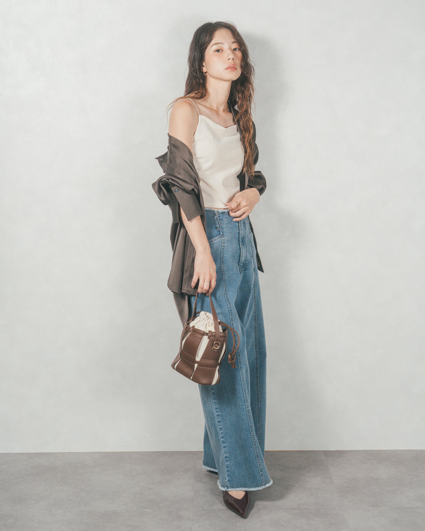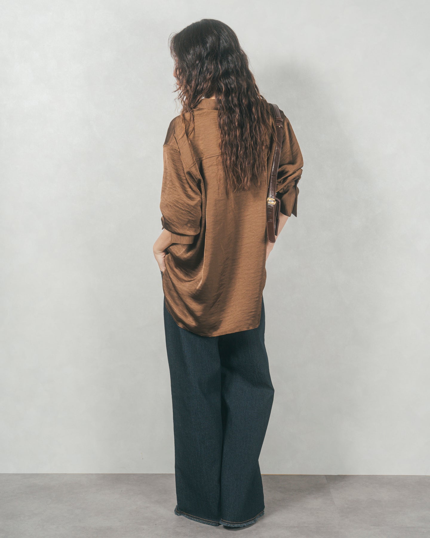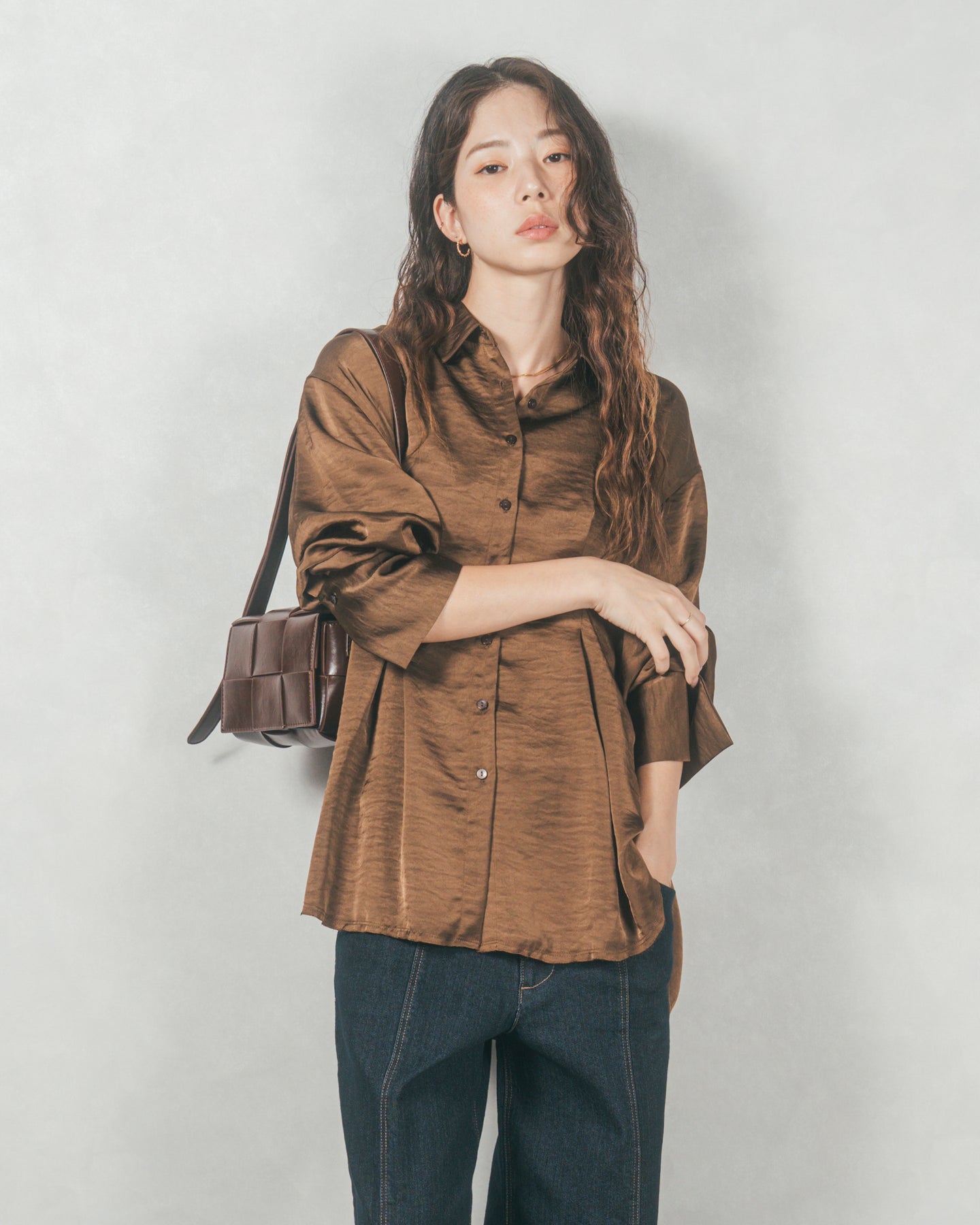 [SET]マットサテン タックシャツ+センターシーム リラックスワイドデニム(2SET)