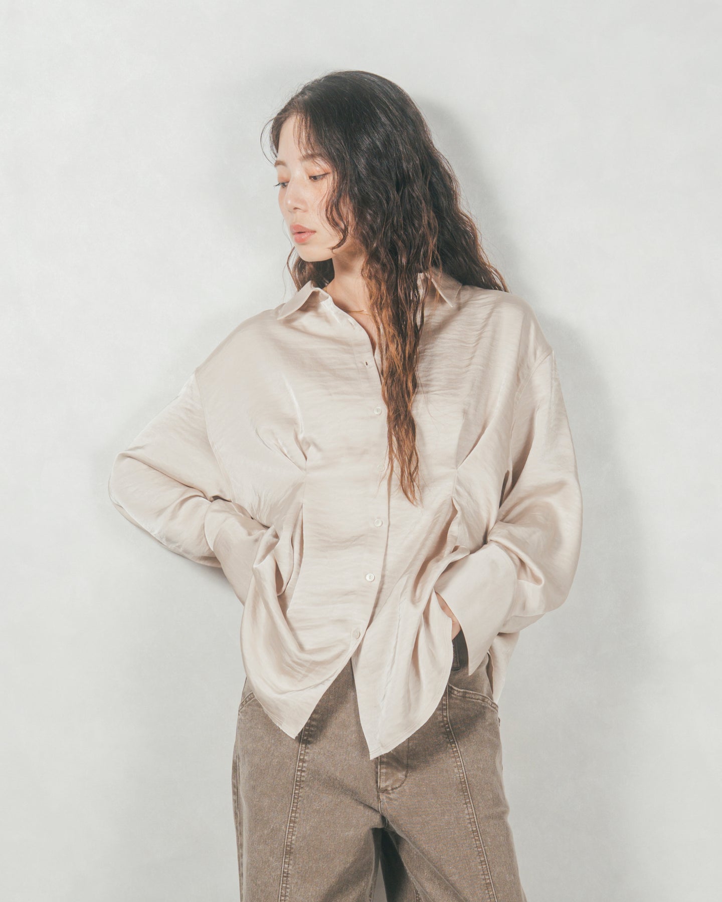 立体感のあるシルエットが新鮮な、ウエストタック入りのオーバーシャツが登場。