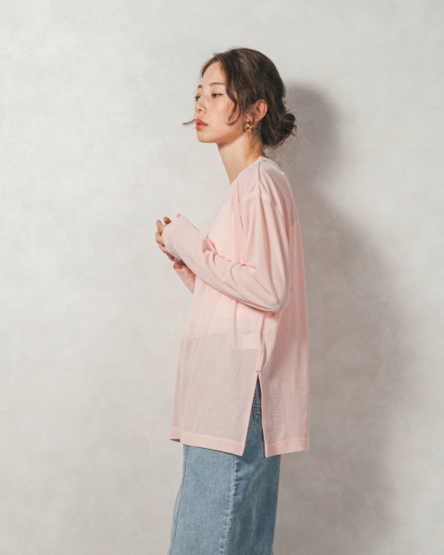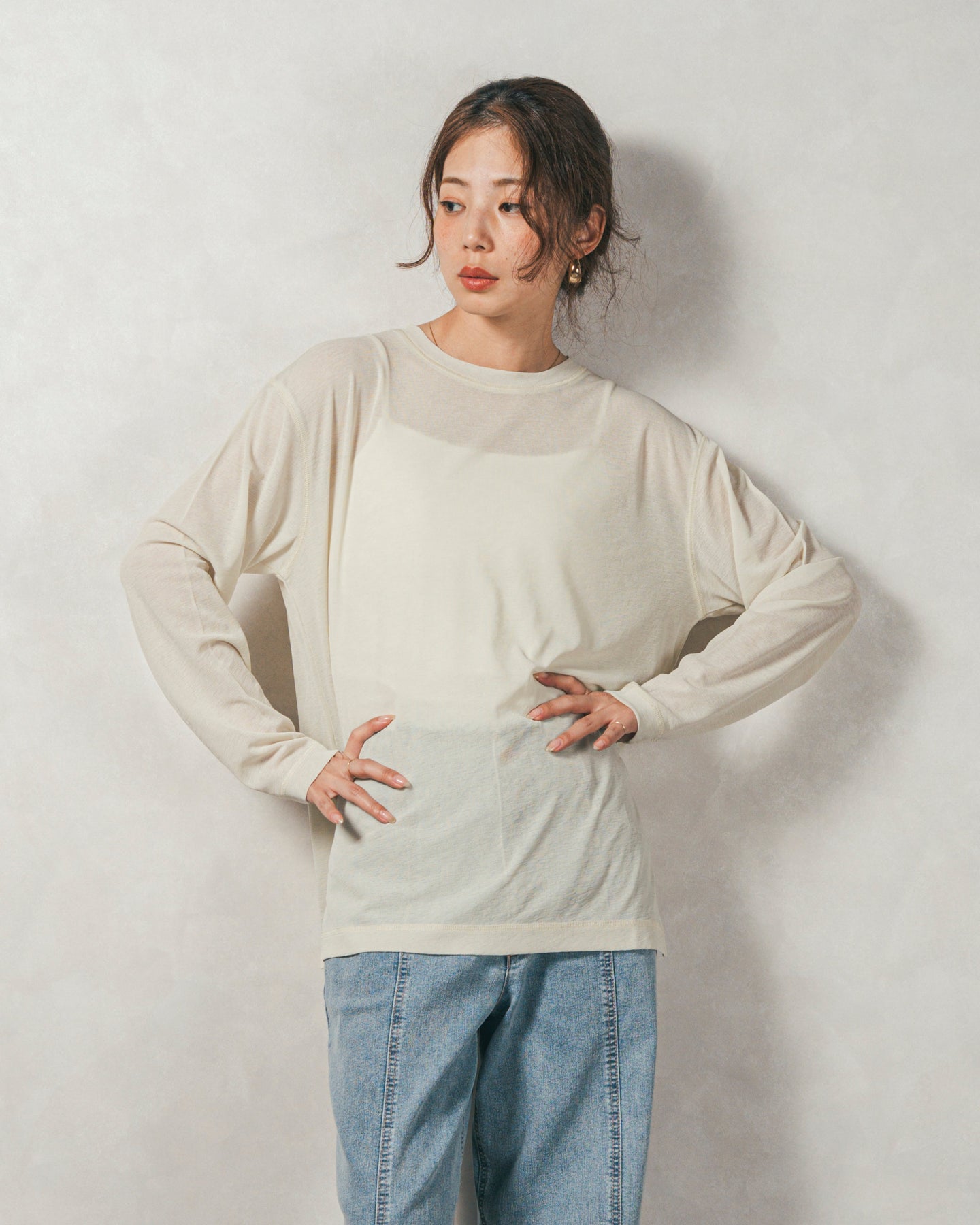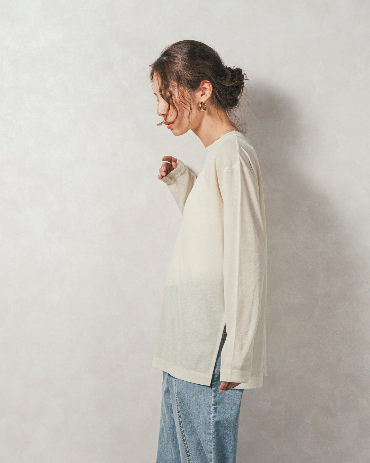 「いつものロンT」よりもワンランクアップ。ナチュラルな抜け感をまとうシアーカットソー
