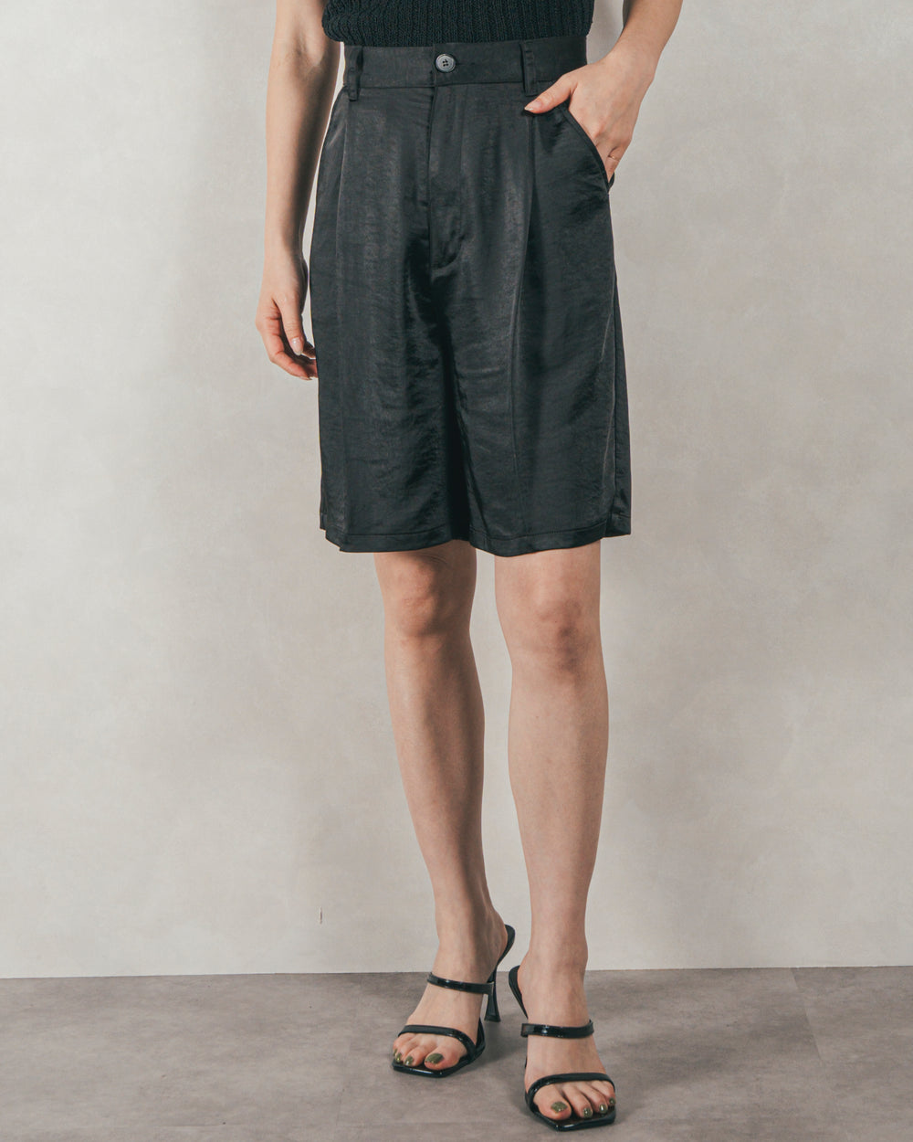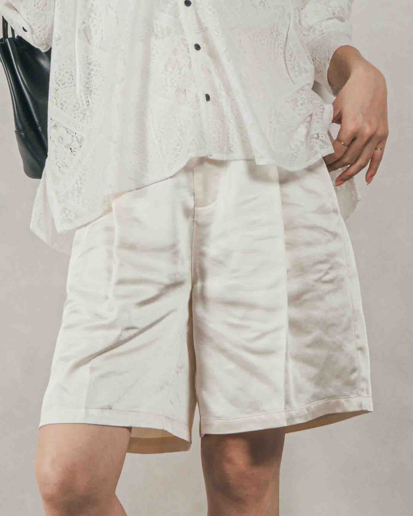 上品な光沢で大人のつや感ハーフパンツ。